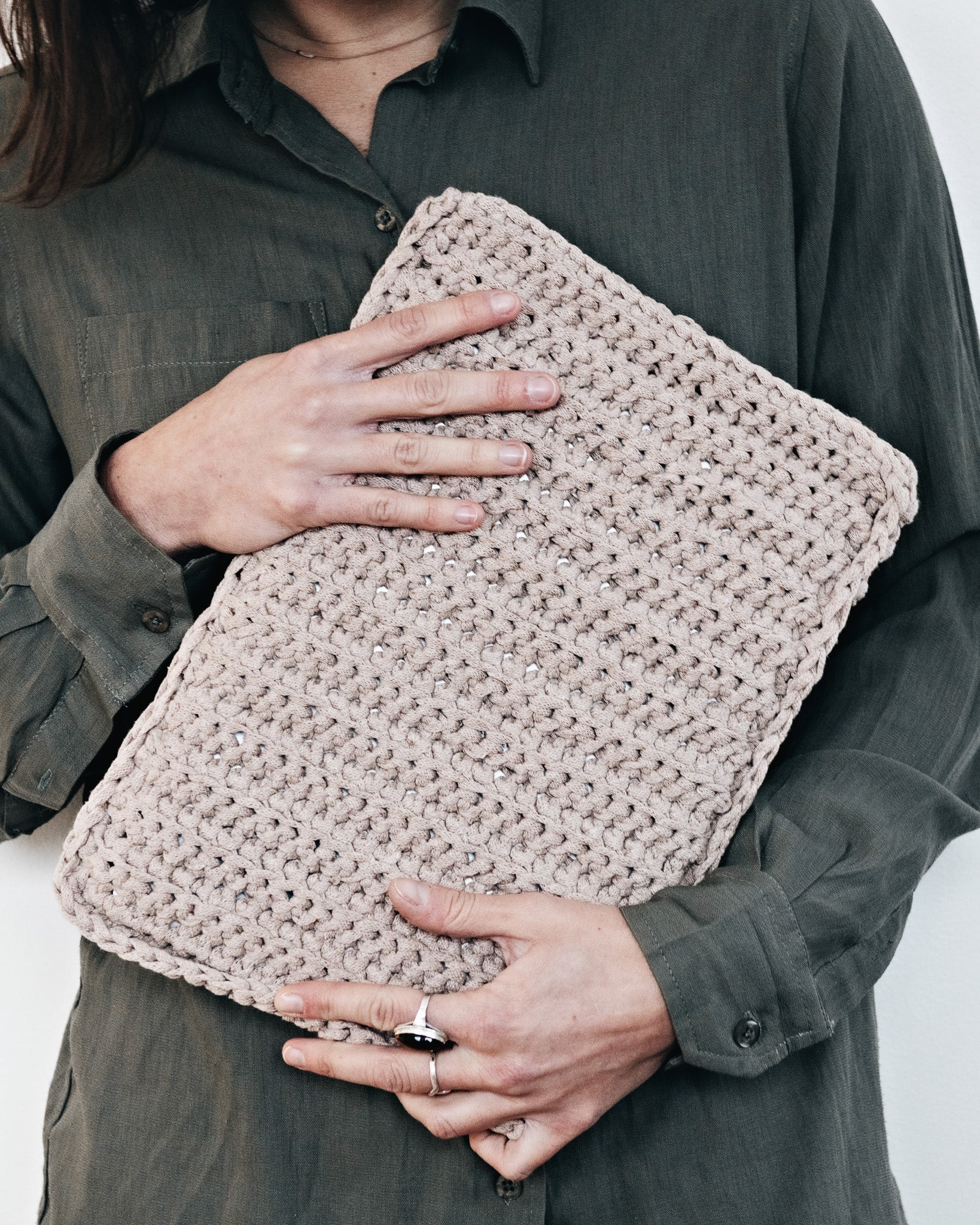 Schütze deinen Laptop, ohne die Umwelt zu belasten - häkle deine eigene Laptop-Hülle aus recycelter Baumwollgarn!