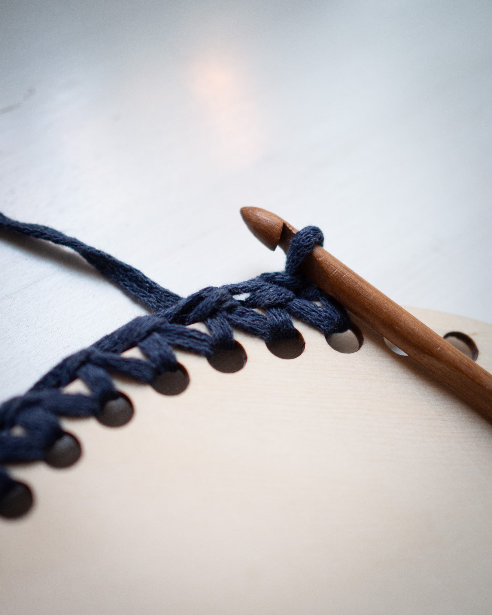 "Crocheting with a wooden base also saves yarn! :)"