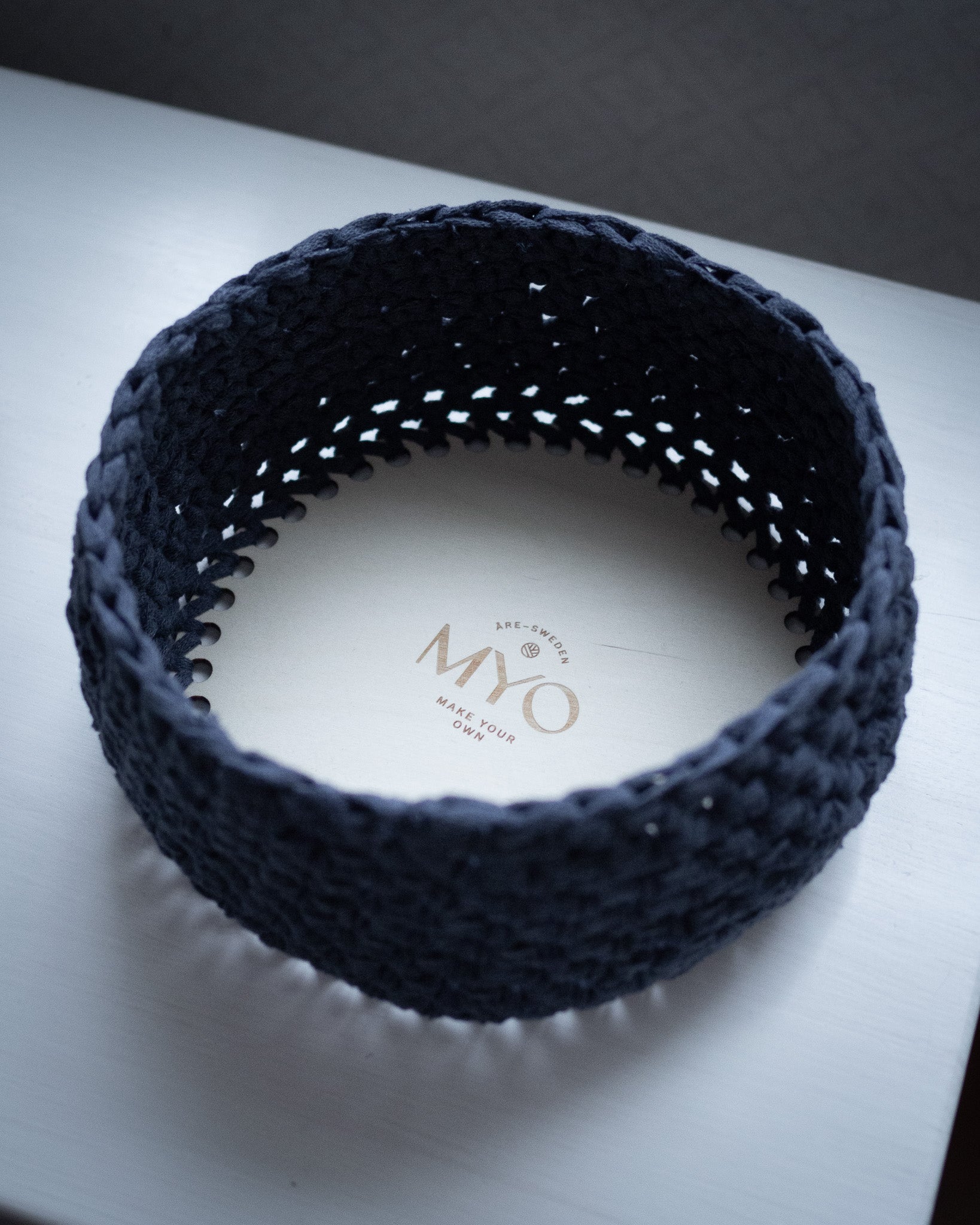 A nice basket bottom that helps you crochet beautiful baskets faster, with a stylish MYO engraving on the bottom. Depending on how thick of a "wall" you want to make, you can choose which of MYO's cotton yarns you want to use, but our recommendation is EKO Medium tube yarn .