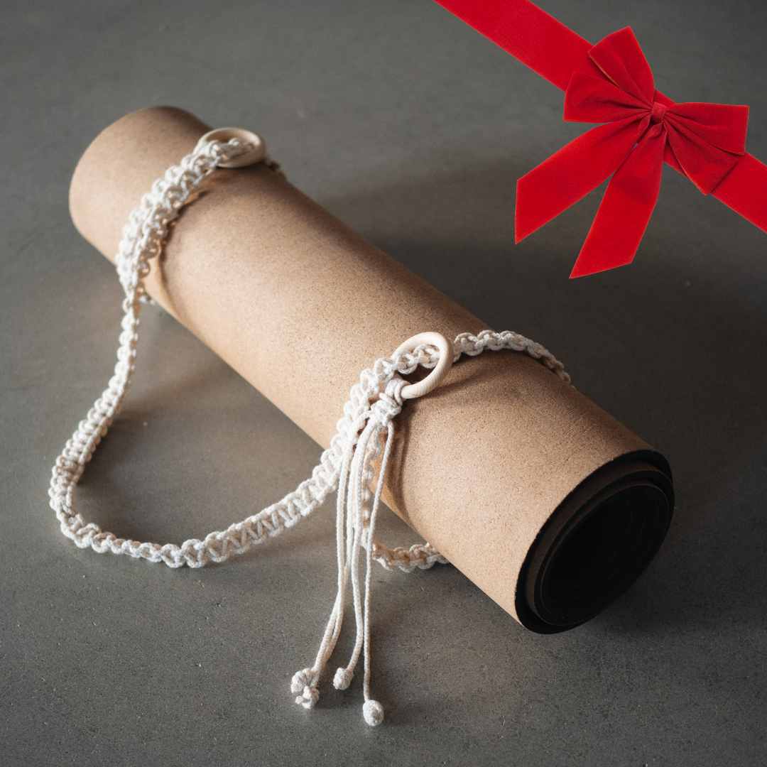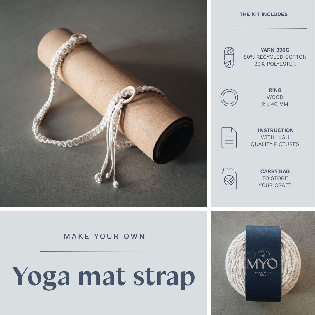 Dit project is perfect voor jou als je een beginner bent in macramé. De mooie riem die je maakt, kun je gebruiken om je mat mee naar de sportschool te nemen, of om hem aan de muur te hangen. Bovendien is de draagriem gemaakt van 80% gerecycled katoen, wat een milieuvriendelijk alternatief is voor een yogamat tas. Dankzij de houten ringen zit de riem strak om je yogamat.
