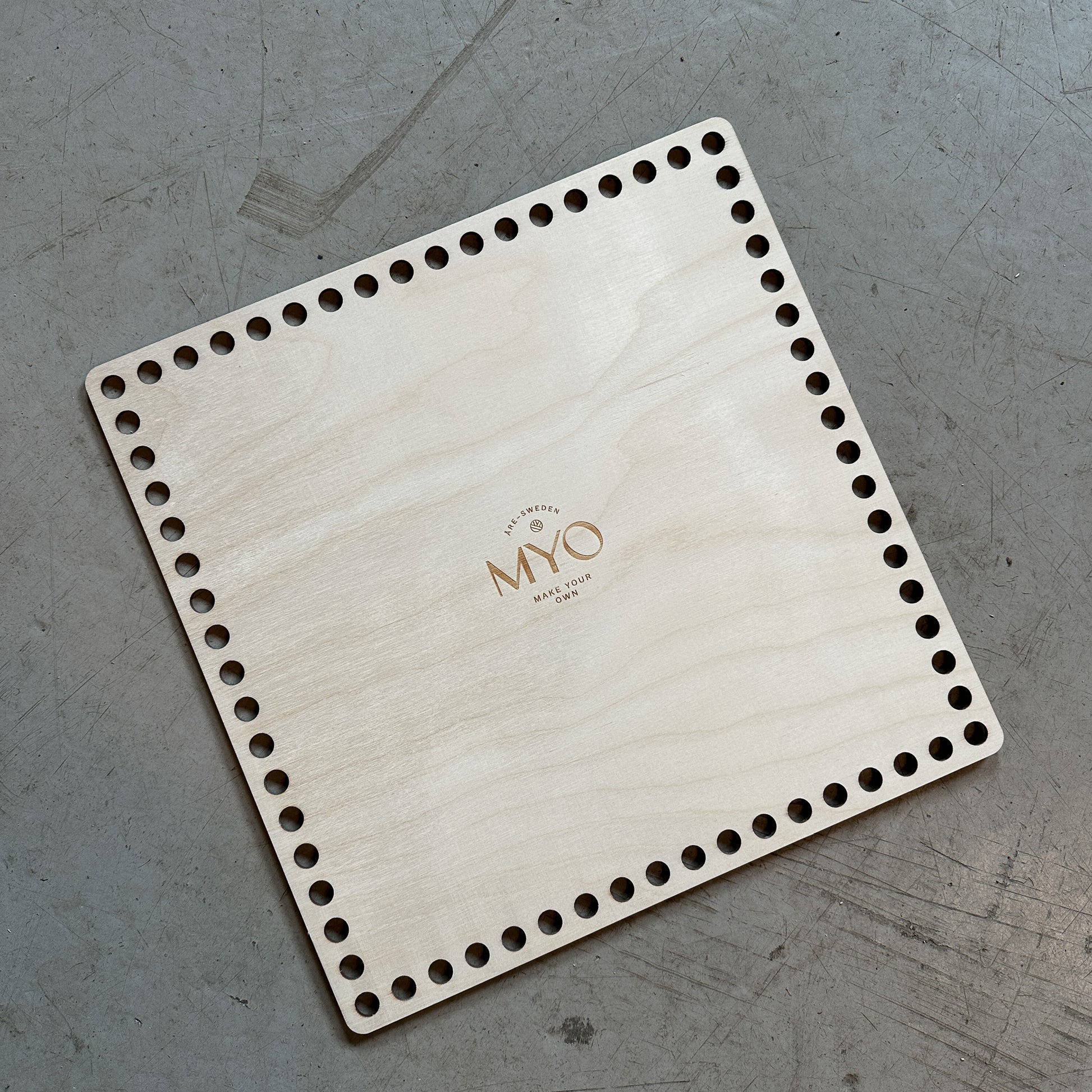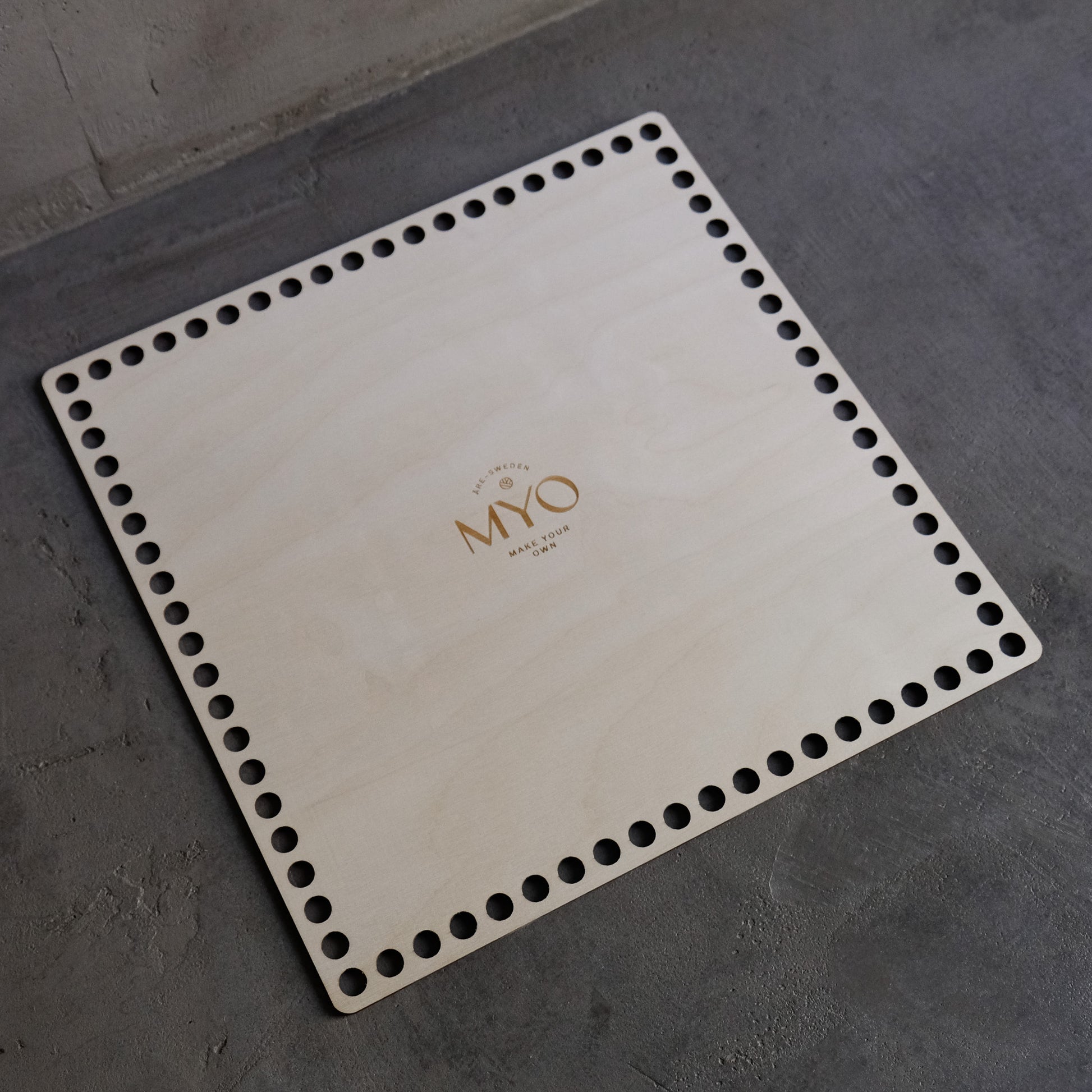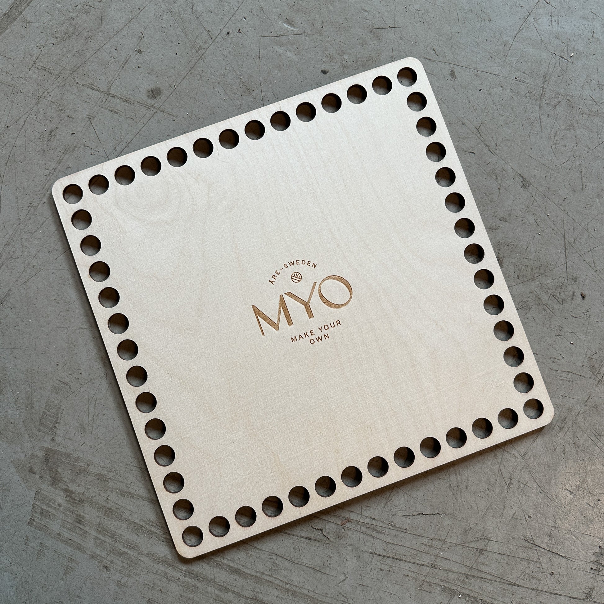 Een mooie mandbodem die je helpt om sneller mooie manden te haken, met een mooie MYO-gravure op de bodem. Afhankelijk van hoe dikke "wand" je wilt maken, kun je kiezen welk van MYO's katoengaren je wilt gebruiken, maar onze aanbeveling is ofwel EKO Medium tube yarn  of EKO Mini tube yarn  (de laatstgenoemde geeft een iets dunner resultaat, maar houdt toch goed samen dankzij de stabiele bodem).Â