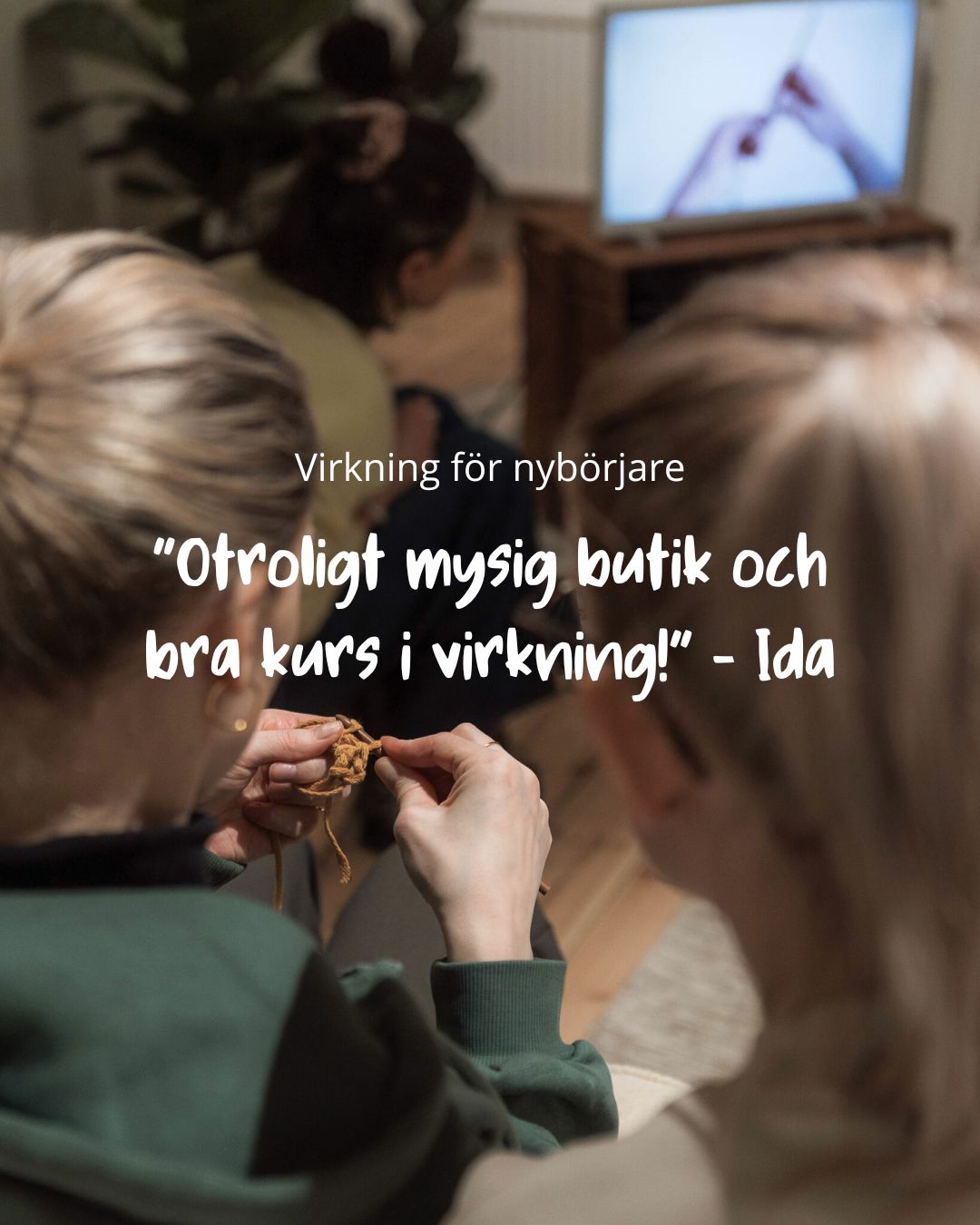 För det mesta - Ja. Under kurstillfällen använder vi garn från butiken och du har möjlighet att testa olika garnsorter. Vill du köpa eget material från butiken, antingen under eller efter kursen, så får du som deltagare 10% rabatt.