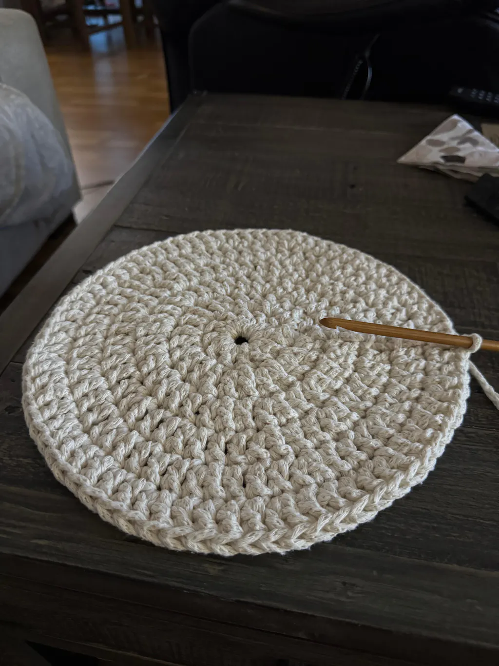 Jättekul att virka med grövre band/garn. Det blev både väska/ korgar och underlägg