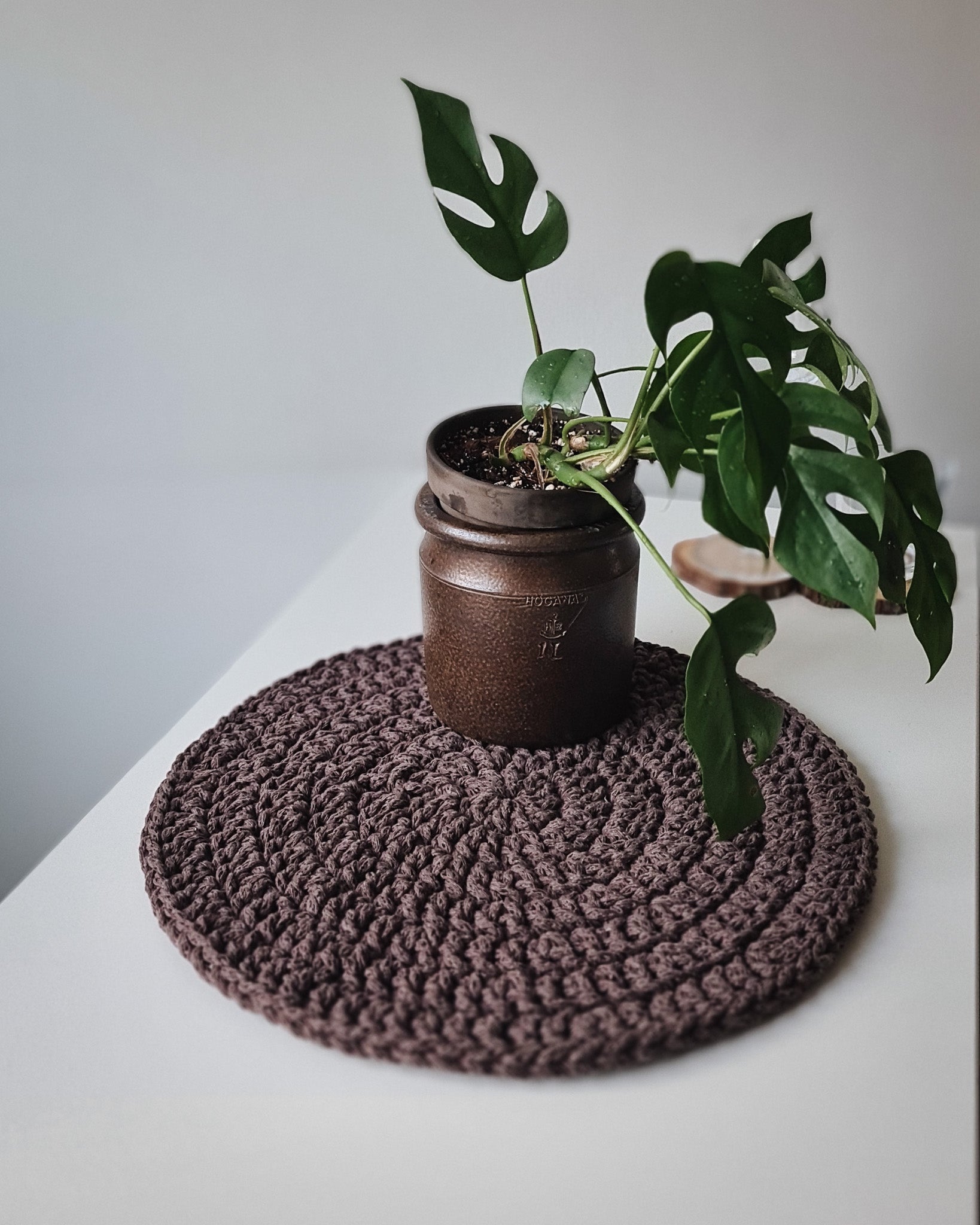 EKO Braided rope 4mm passar till olika slags makramé-arbeten och virkning av t.ex. tallriksunderlägg. Något lösare i strukturen än Braided rope 3mm, vilket gör garnet mjukt att virka med, men lite mer elastisk än våra andra braided-garner. Om du t.ex. vill göra amplar rekommenderar vi istället EKO Braided rope 5mm eller 3mm.