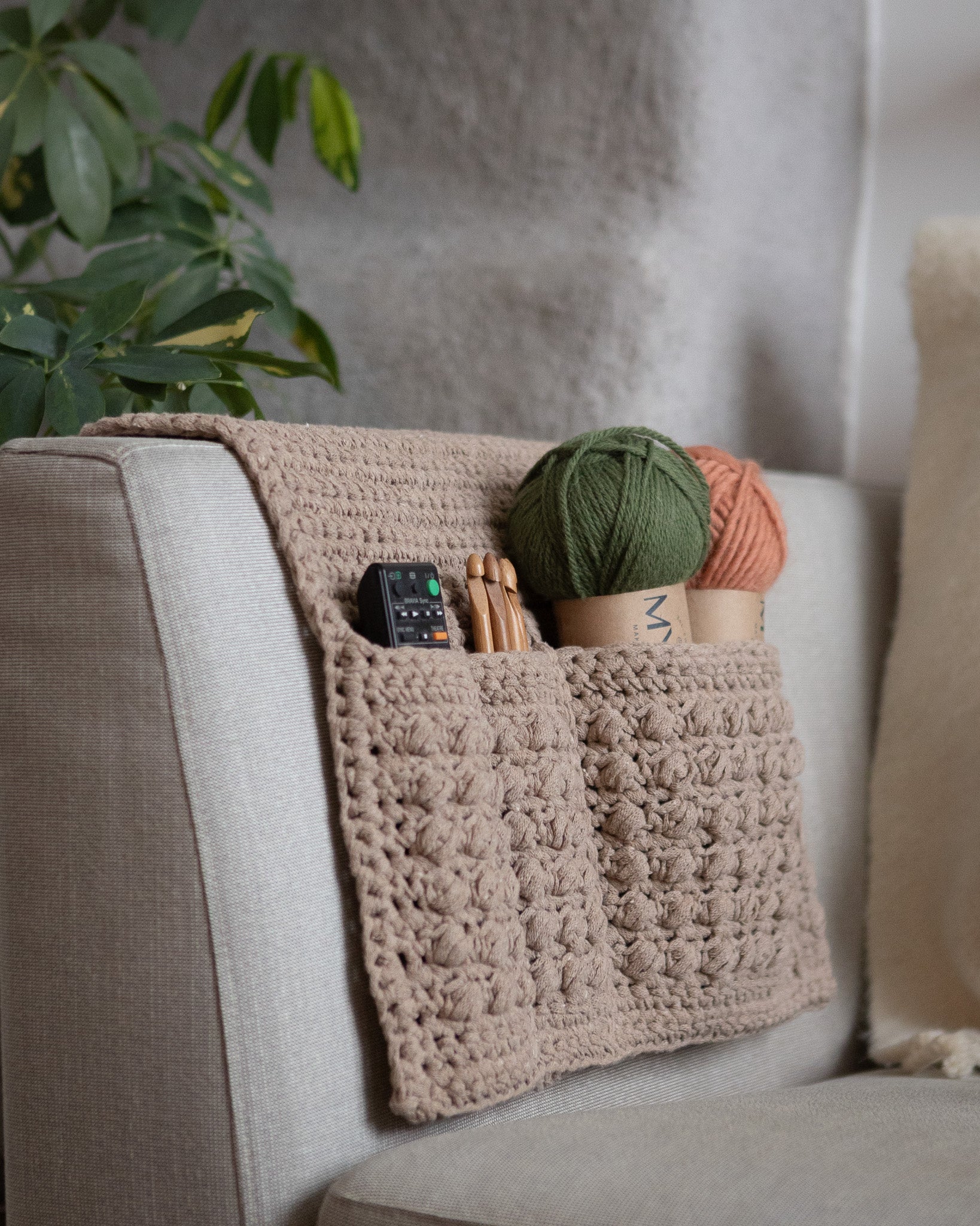Storlek på virknål: 7mm, stickor 10-20 mm