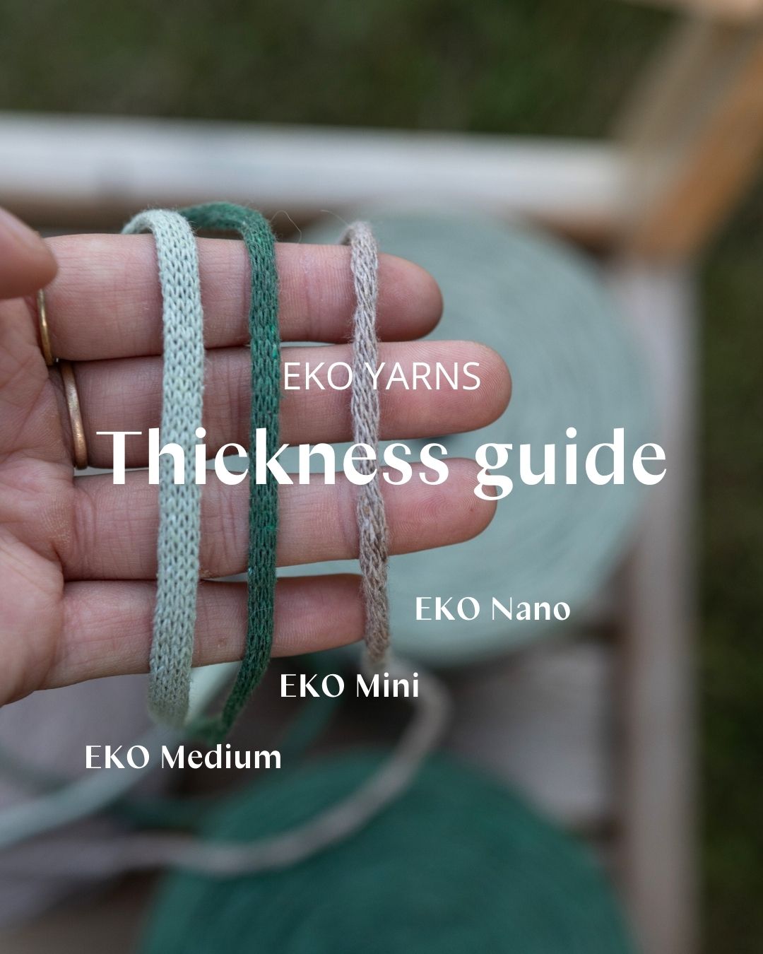 De flesta färgerna på EKO Mini finns nu i två storlekar: 500g och 1000g. 1kg motsvarar ca 355m garn.