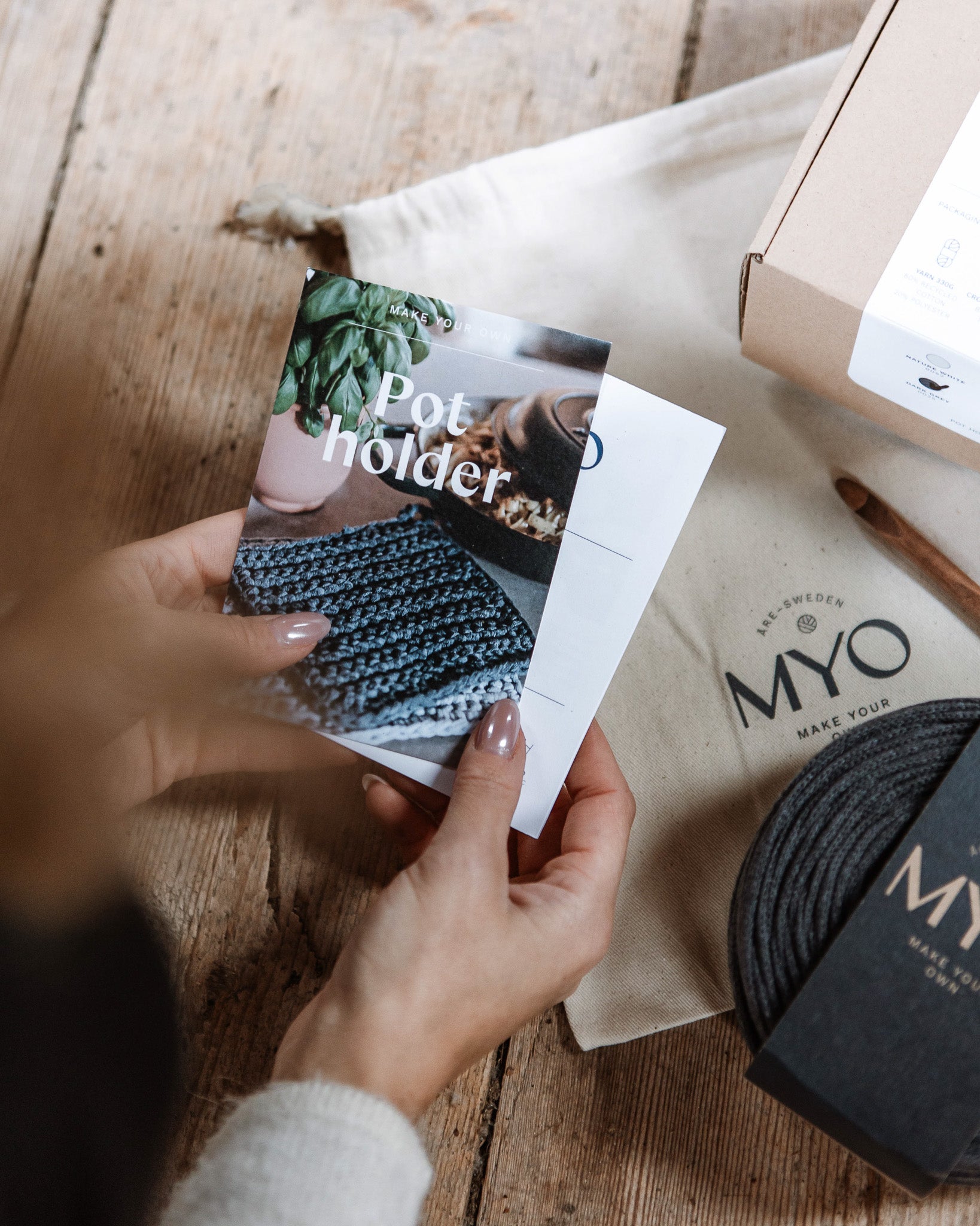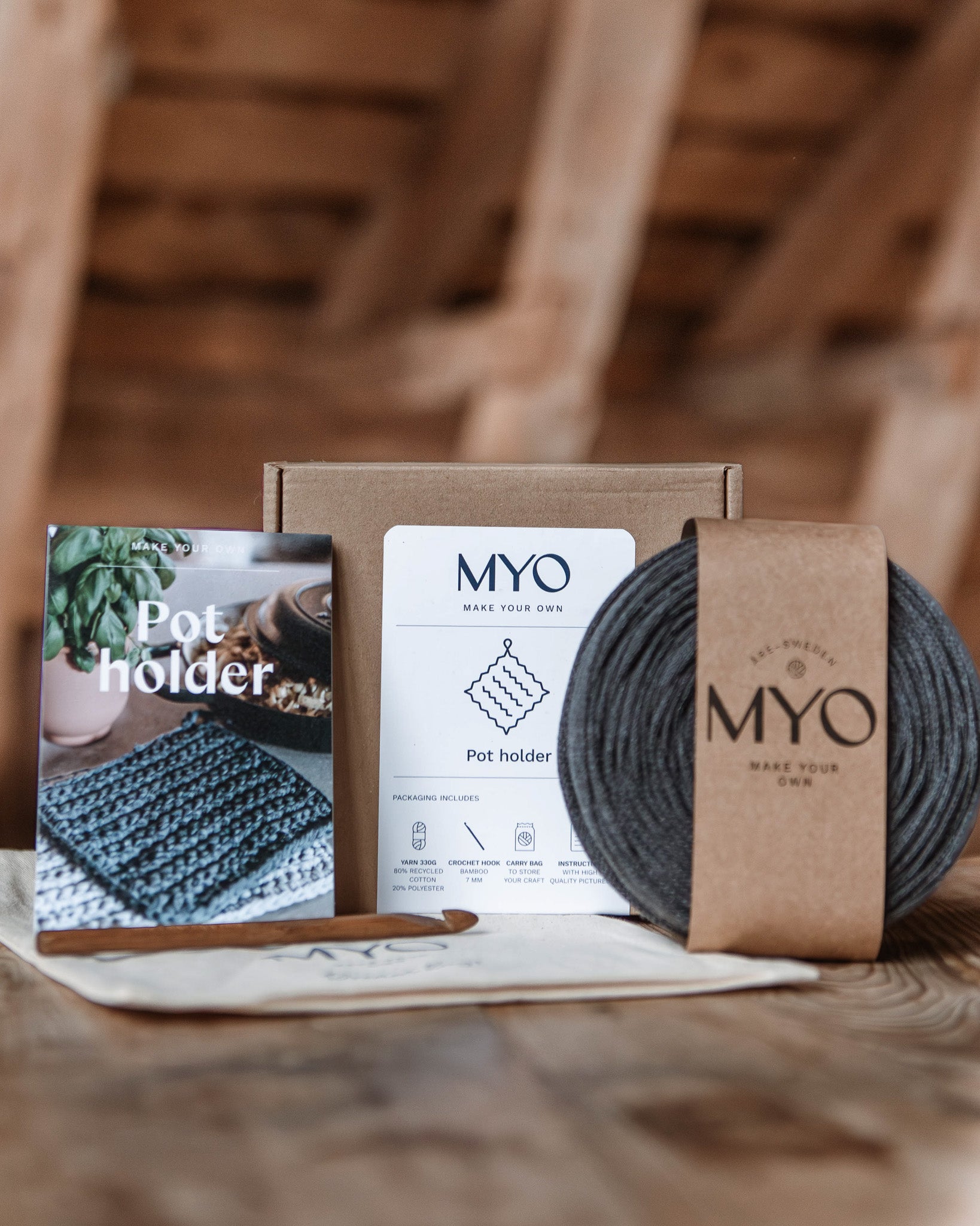 MYO's virkad grytunderlägg, tack vare sitt tåliga material, kan användas både under grytan och till att hantera varma saker i köket. Detta projekt passar perfekt för dig som är nybörjare och vill lära dig grunderna till hur man virkar.